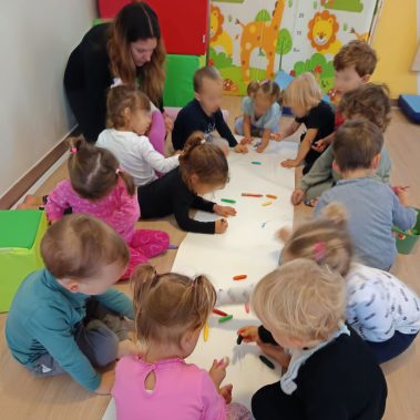 9:15 sempre in salone si svolgono i canti di benvenuto e di buon inizio di giornata, il conteggio di tutti i bimbi presenti.