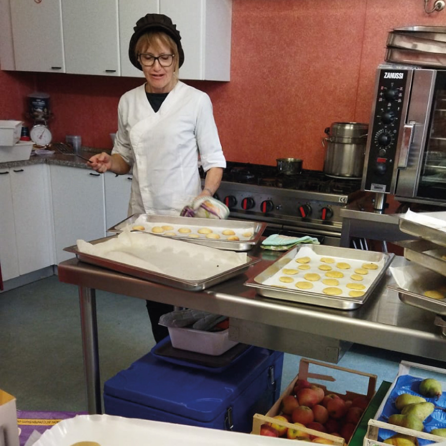 11:30 i bambini raggiungono il refettorio per il pranzo preparato dalle nostre cuoche, secondo il menù del giorno.