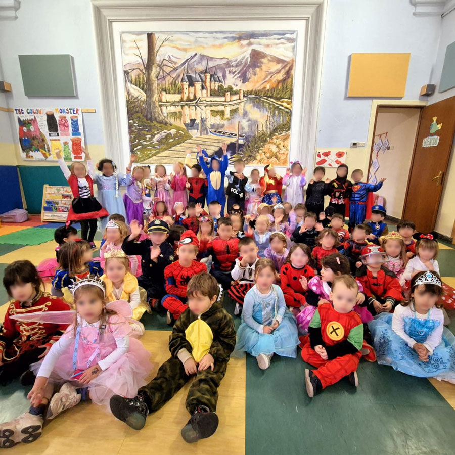 Carnevale: All’asilo il Carnevale è una giornata di gioia e meraviglia: i bambini si travestono, ridono, giocano e sfilano tra coriandoli e musica. Un momento di festa condivisa che riempie le aule di colori, allegria e fantasia.