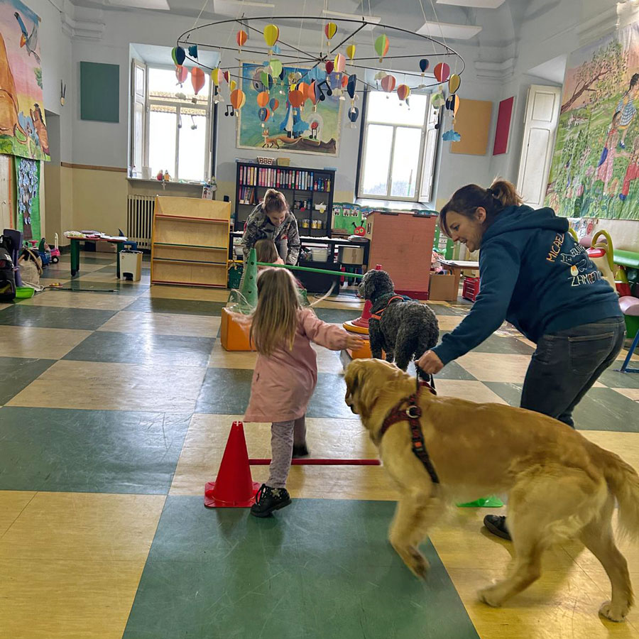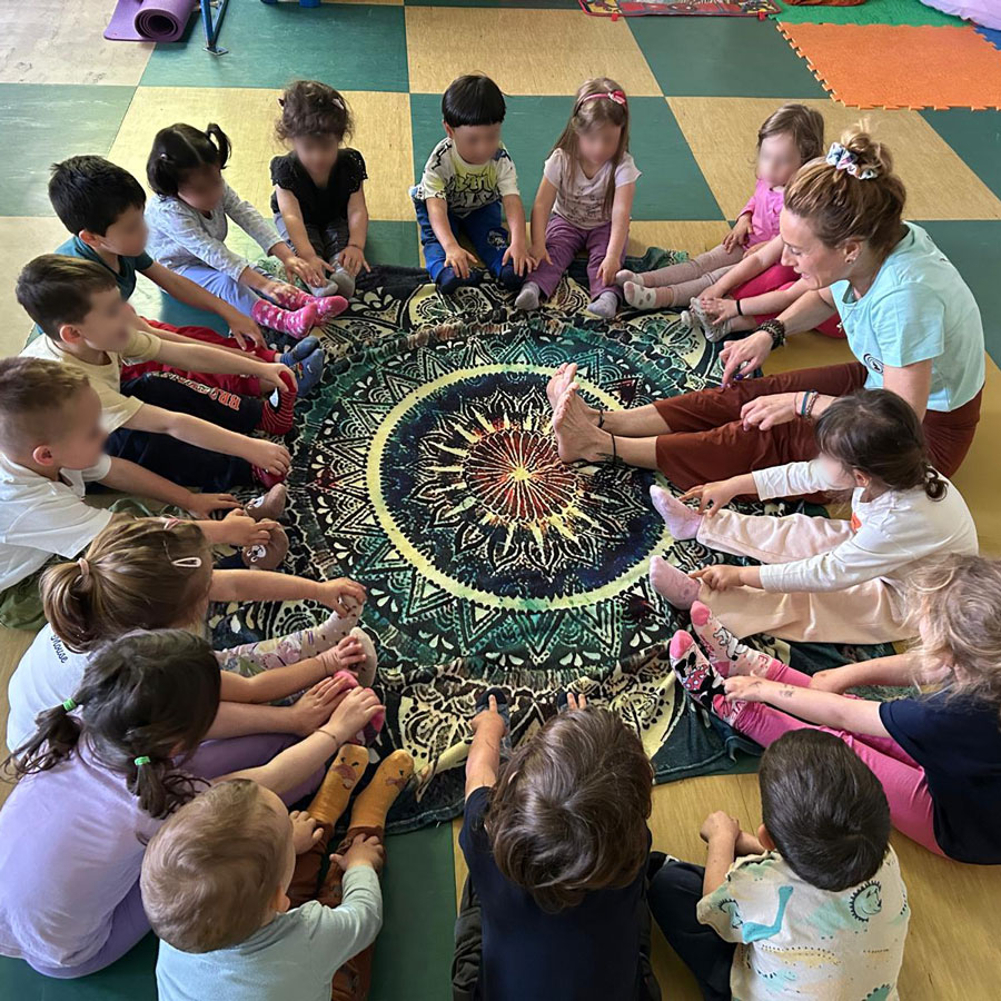 Progetti speciali: Ogni anno la scuola propone attività extrascolastiche pensate per arricchire il percorso educativo dei bambini. Yoga, arte terapia, psicomotricità, pet therapy, gioco circo, gioco danza e storie animate sono alcune delle esperienze che accompagnano i piccoli nella scoperta di sé e del mondo attraverso il corpo, l’emozione e la creatività. Le insegnanti scelgono e realizzano ogni anno due progetti tematici, adattandoli al gruppo e al tema educativo dell’anno.
